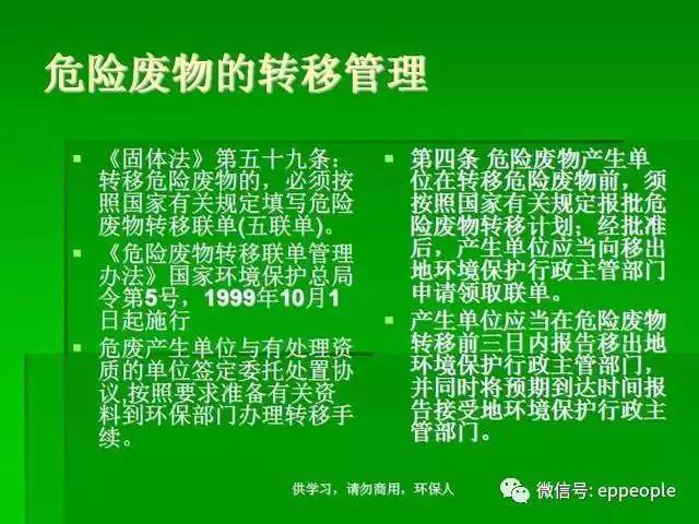 7)企業(yè)需要有清晰、詳細的臺賬;五聯(lián)單執(zhí)行情況,企業(yè)需要有齊全的轉(zhuǎn)移手續(xù)對危險廢物進行交換轉(zhuǎn)移。