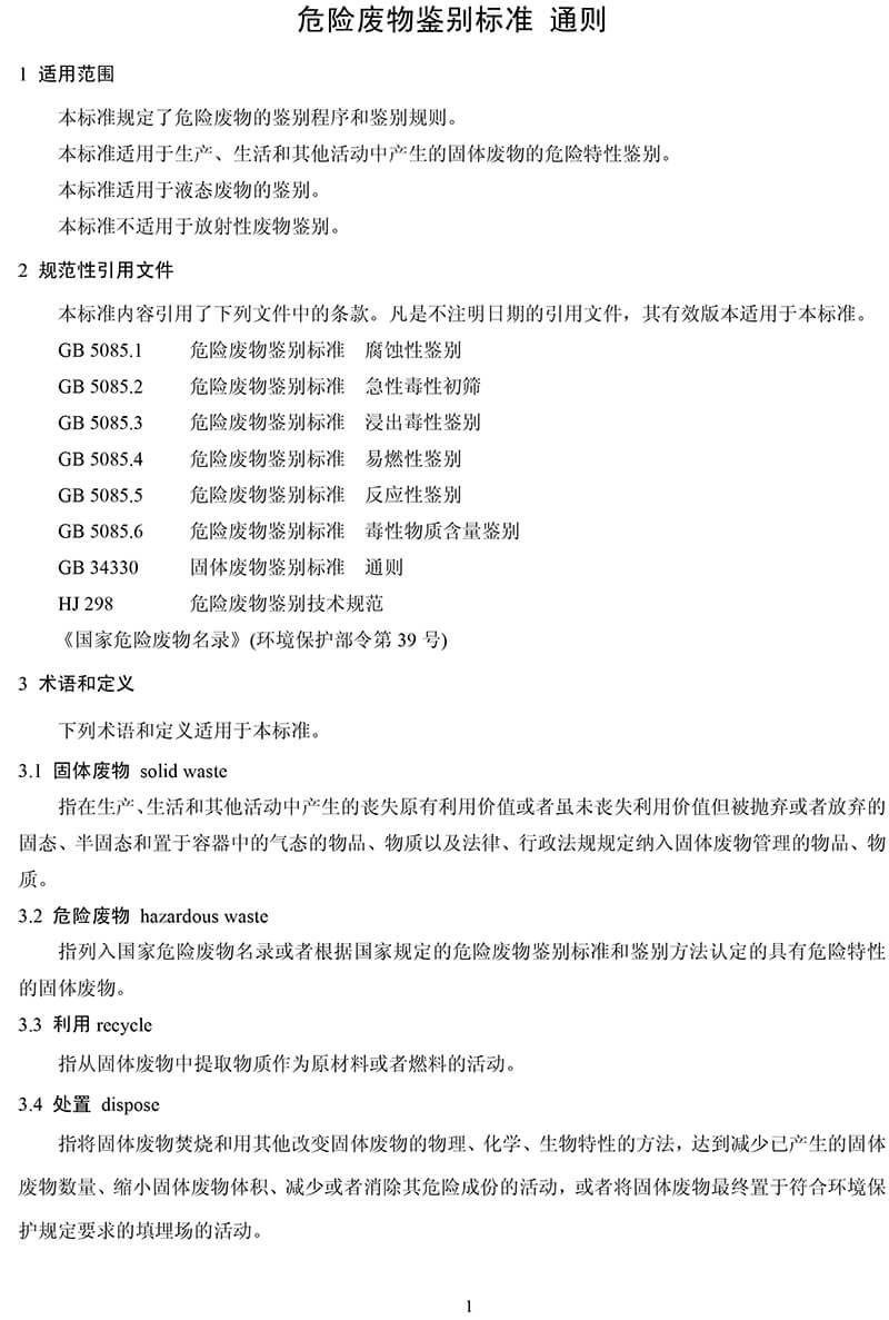 危險(xiǎn)廢物鑒別標(biāo)準(zhǔn) 通則